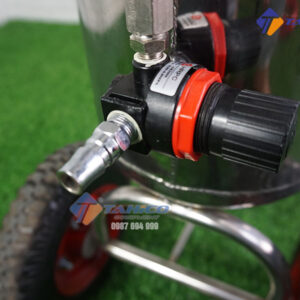 + Khóa van tiếp nước, vặn van hơi vào cho đến khi đồng hồ áp lực lên 4 kg/cm3