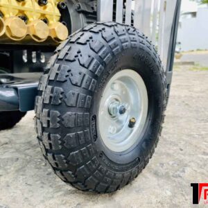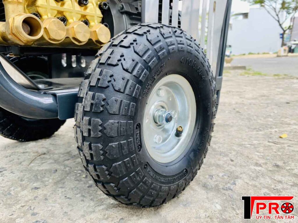 - Thiết kế có bánh xe bơm hơi, vành đúc bền.
