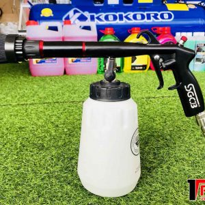 - Đầu súng là bàn chải nhựa không quá cứng cũng không quá mềm, dưới áp lực của máy nén khí sẽ làm cho đầu bàn chải xoay nhanh và mạnh, dễ dàng làm sạch các vết bẩn. Đặc biệt bàn chải không dễ bị biến dạng